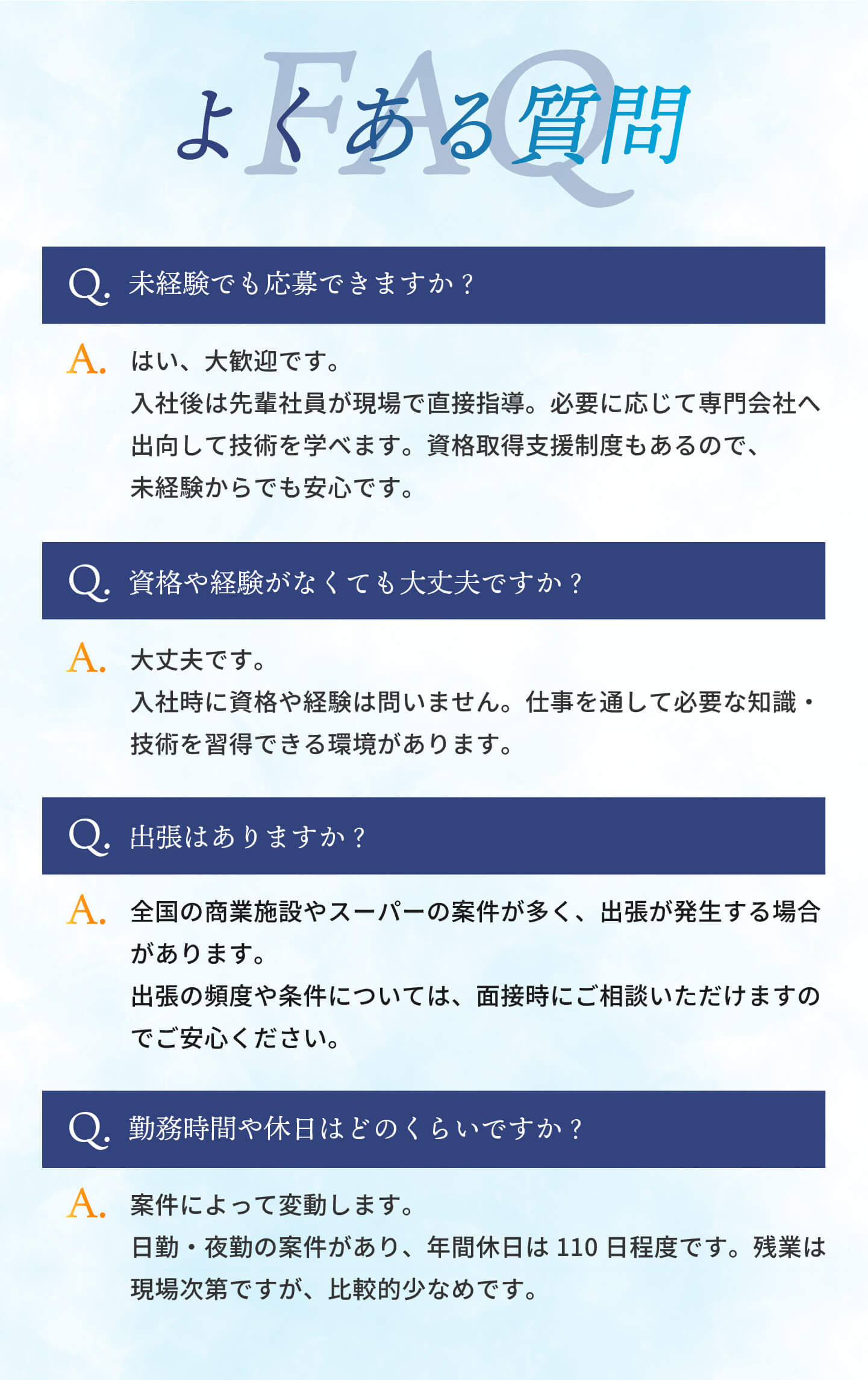 | 事業内容 | 電気・空調・衛生・消防設備工事、環境・省エネ機器販売・施工・保守 |